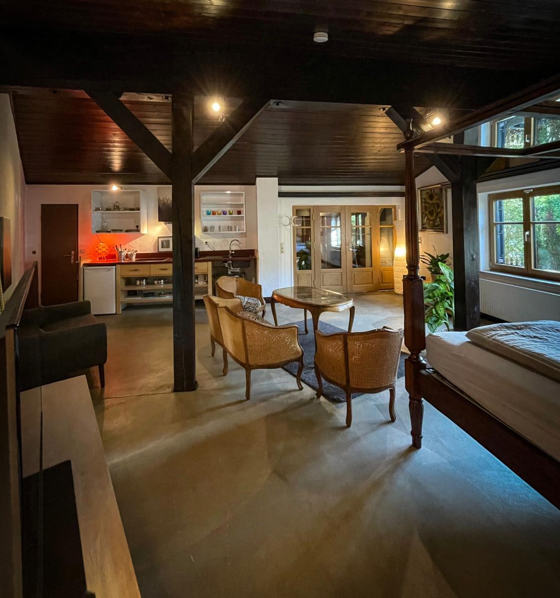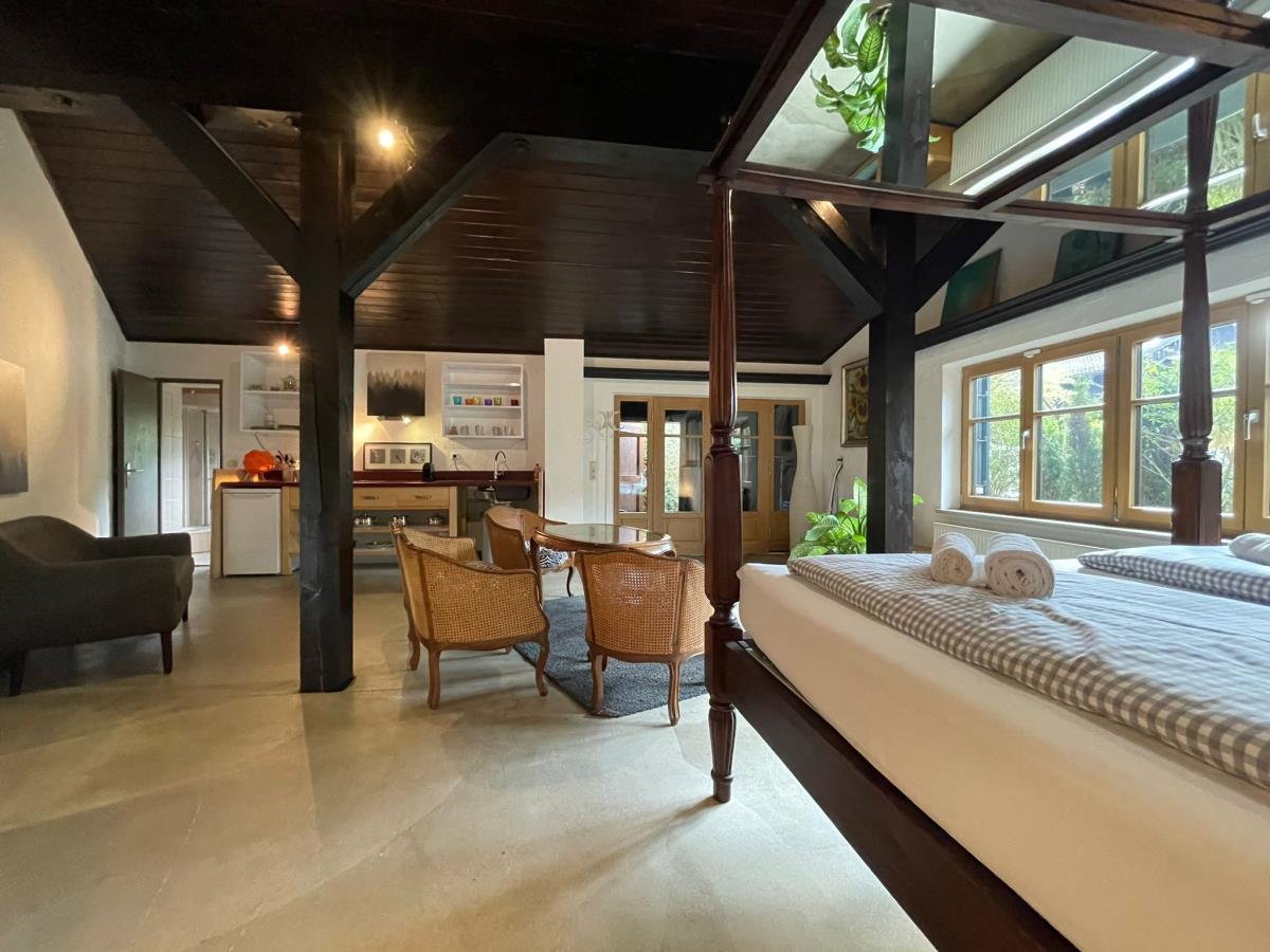 Das Anbauhaus hat eine sonnige und windgeschützte Terrasse und liegt im Erdgeschoss eines Landhauses in sehr schöner, zentraler Lage mit Gebirgsblick. Es ist geschmackvoll, gemütlich eingerichtet und besteht aus einem Wohnschlafraum einem einem Essplatz und einer Einbauküche, einem Doppelbett und einem seperatem Duschbad mit WC.