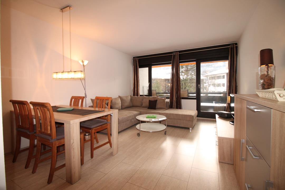 Sonnige und zentrumsnahe 3-Zimmer-Wohnung mit Südbalkon und herrlichem Gebirgsblick im 1. OG eines Apartmenthauses im Ortsteil Garmisch.
