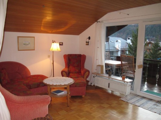 Die 4-Zimmer-Wohnung mit breitem Süd- und Nordbalkon und herrlichem Blick auf die Alpspitze und das Zugspitzmassiv liegt im Dachgeschoss eines Wohnhauses in bayerischem Baustil. Rad- und Wanderwege, sowie Bergbahnen und die Langlaufloipe liegen ganz in der Nähe. Zum Riessersee und dem dortigen Freibad sind es ca. 10 - 15 Gehminuten, bzw. 5 Minuten mit dem Auto.