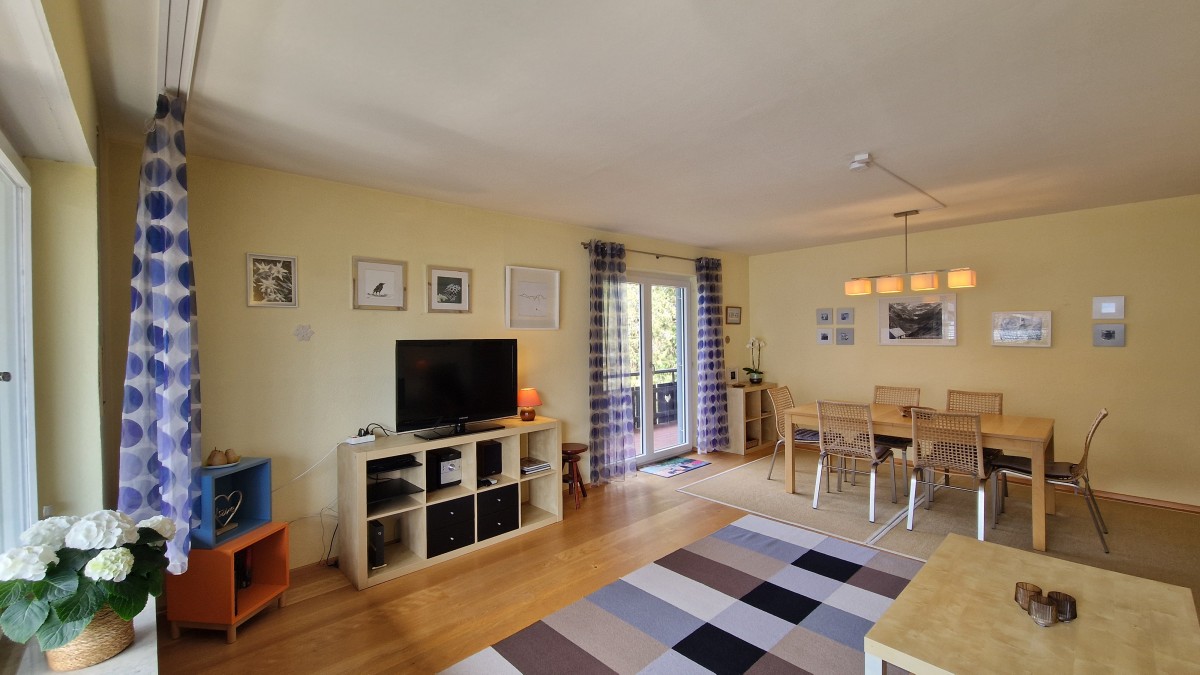 Die zentrumsnahe, sonnige 3-Zimmer Wohnung mit großem umlaufenden Süd- und Westbalkon hat einen herrlichen Panoramablick auf die umliegenden Berge. Sie liegt im ersten Stock eines gepflegten Landhauses und ist von der Straße abgewandt.