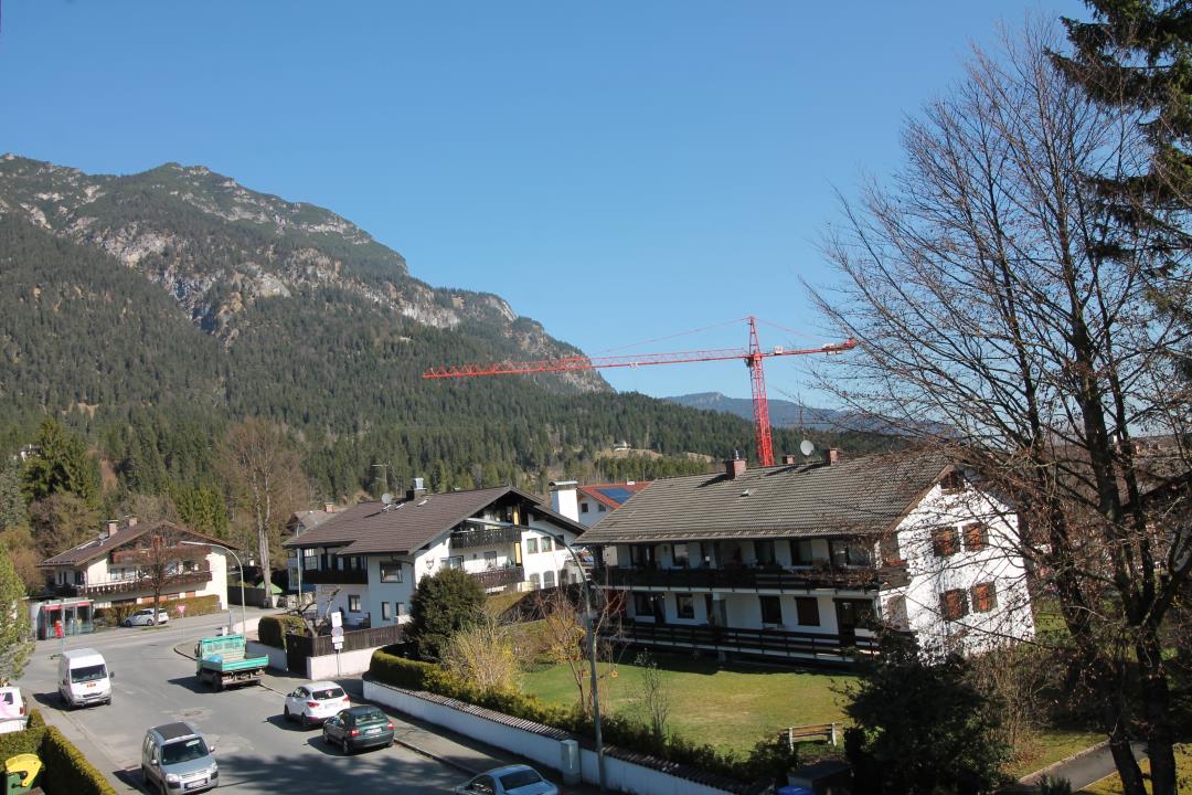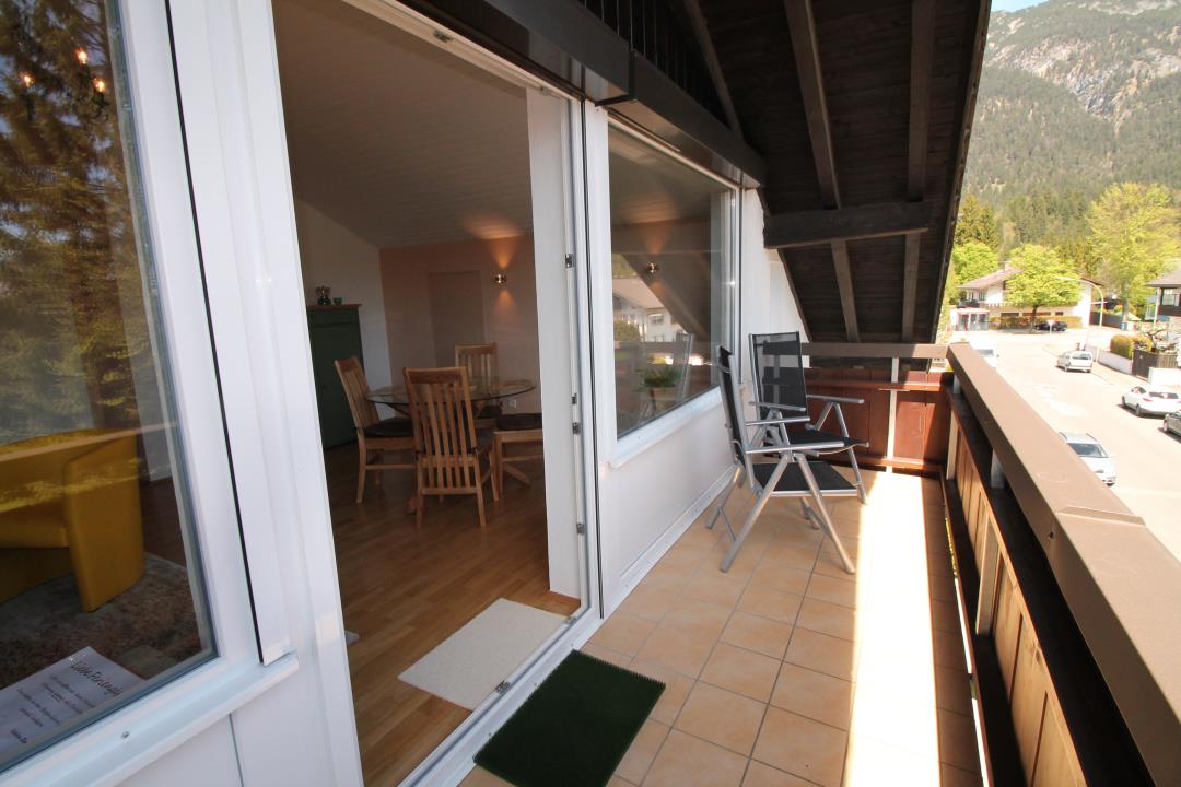 Die Wohnung hat einen schönen Balkon mit Morgen- und Mittagssonne und einen herrlichen Blick auf die umliegenden Berge wie Wank, Kramer und Karwendel.