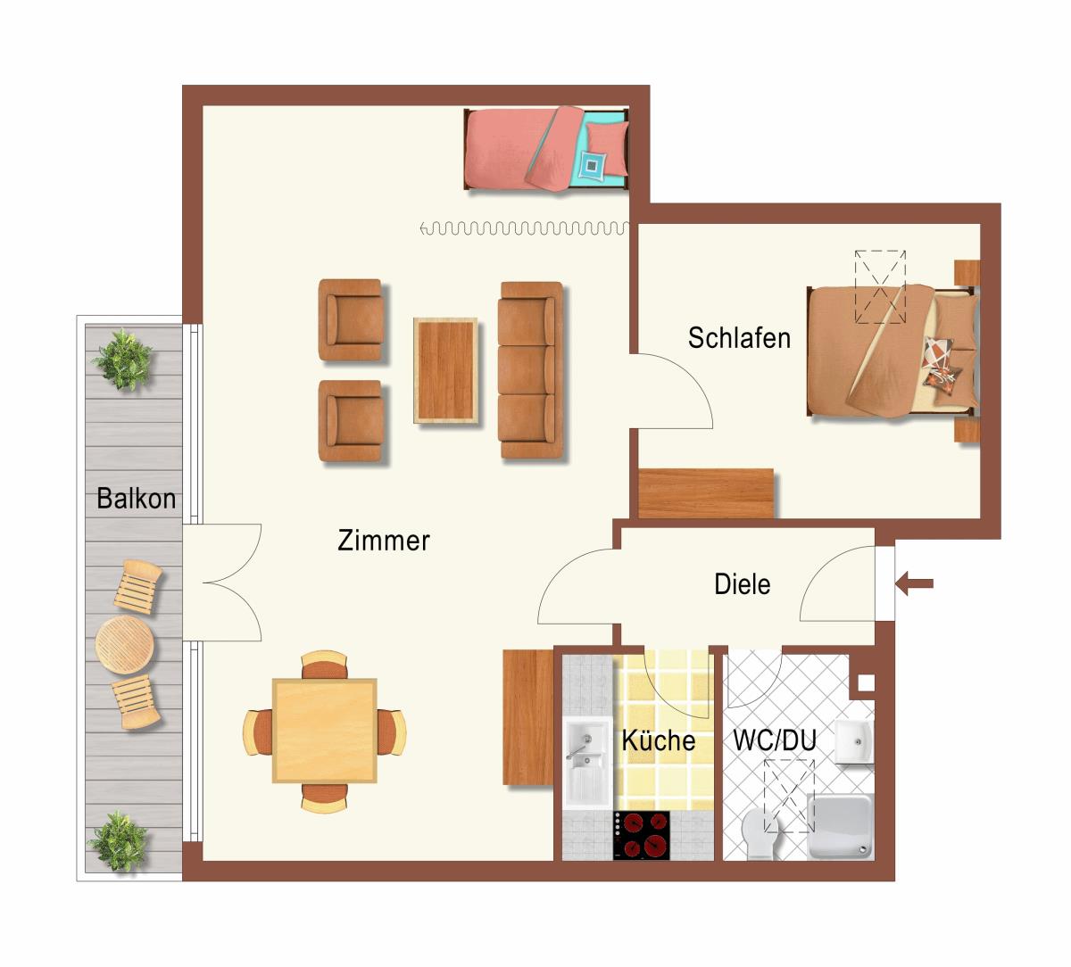 Die gemütliche und geschmackvoll eingerichtete Wohnung liegt in einem Mehrfamilienhaus in bayrischem Baustil in ruhiger und sonniger Lage.