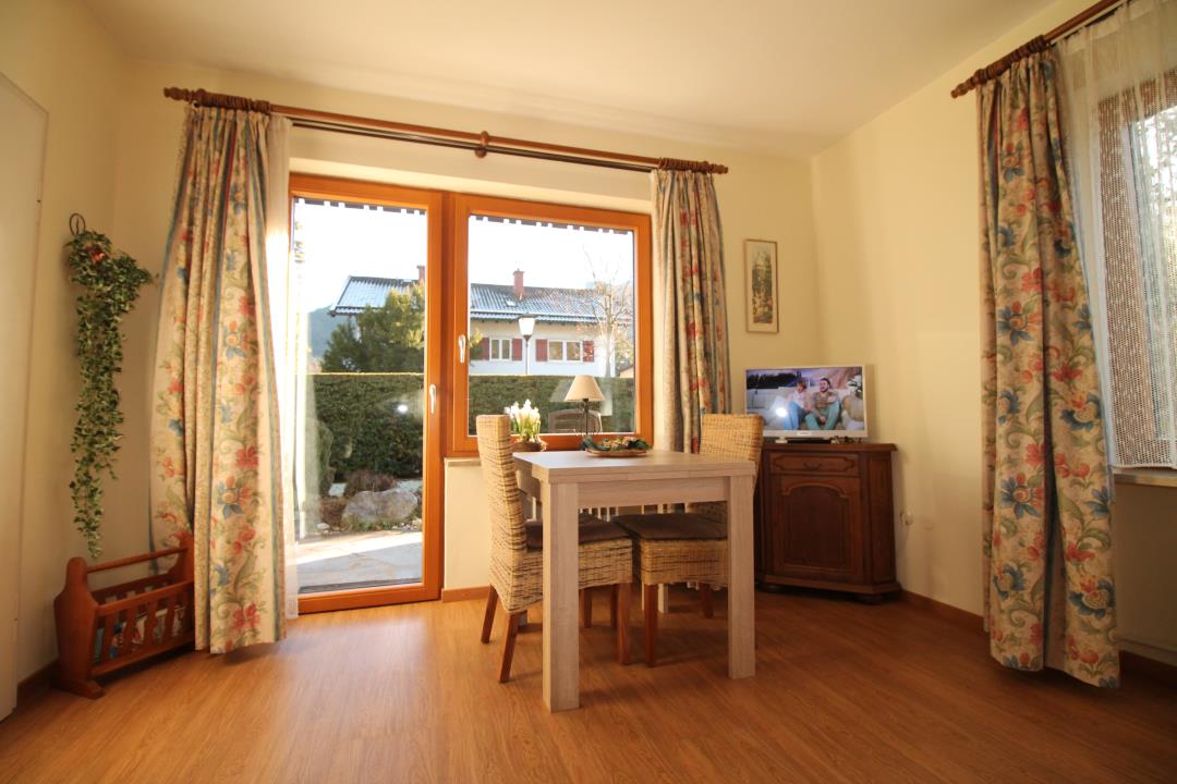 Die zentral gelegene, sonnige 1-Zimmer Wohnung liegt im Erdgeschoss eines gepflegten Mehrfamilienhauses in ruhiger und sonniger Lage. In wenigen Gehminuten erreicht man die Fußgängerzone von Garmisch, alle Einkaufsmöglichkeiten, die Bushaltestelle und Wanderwege. Die gemütlich eingerichtete Wohnung hat eine Südterrasse mit kleinem Garten und einen schönen Gebirgsblick.