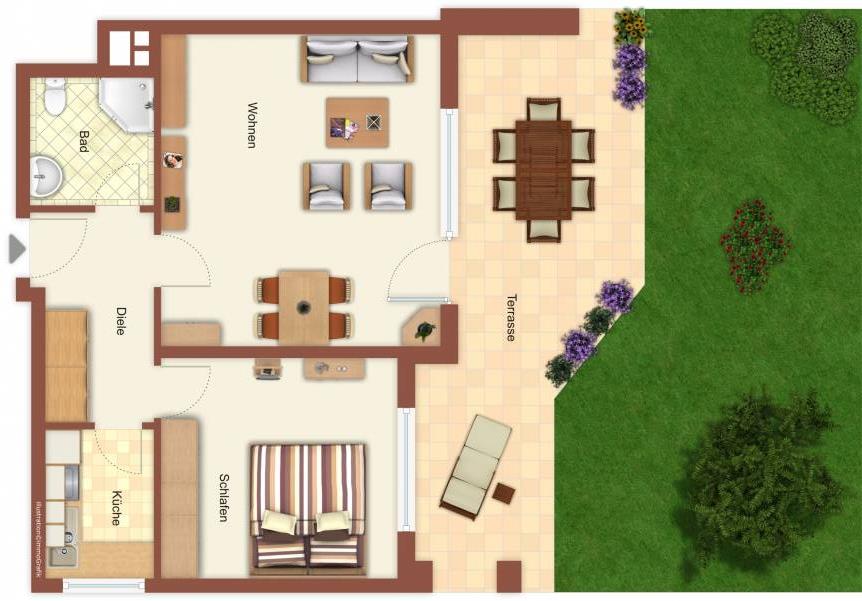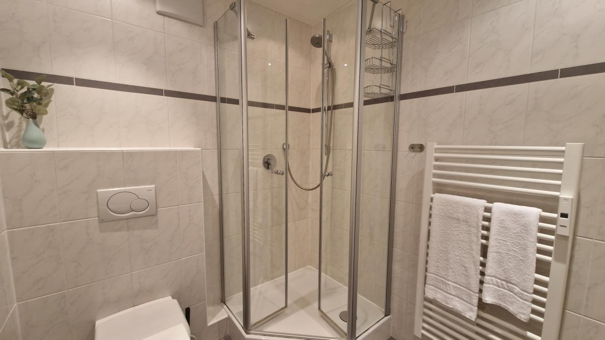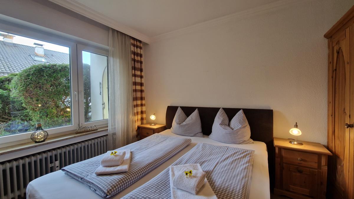 Die geschmackvoll und gemütlich eingerichtete Wohnung besteht aus einem Wohnzimmer, einem Essplatz und einem Schrankbett (2,00 x 1,80 m) sowie einer Sitzgruppe, einem Schlafzimmer mit Französischem Bett und Fernseher, einer Einbauküche und einem Duschbad mit WC.