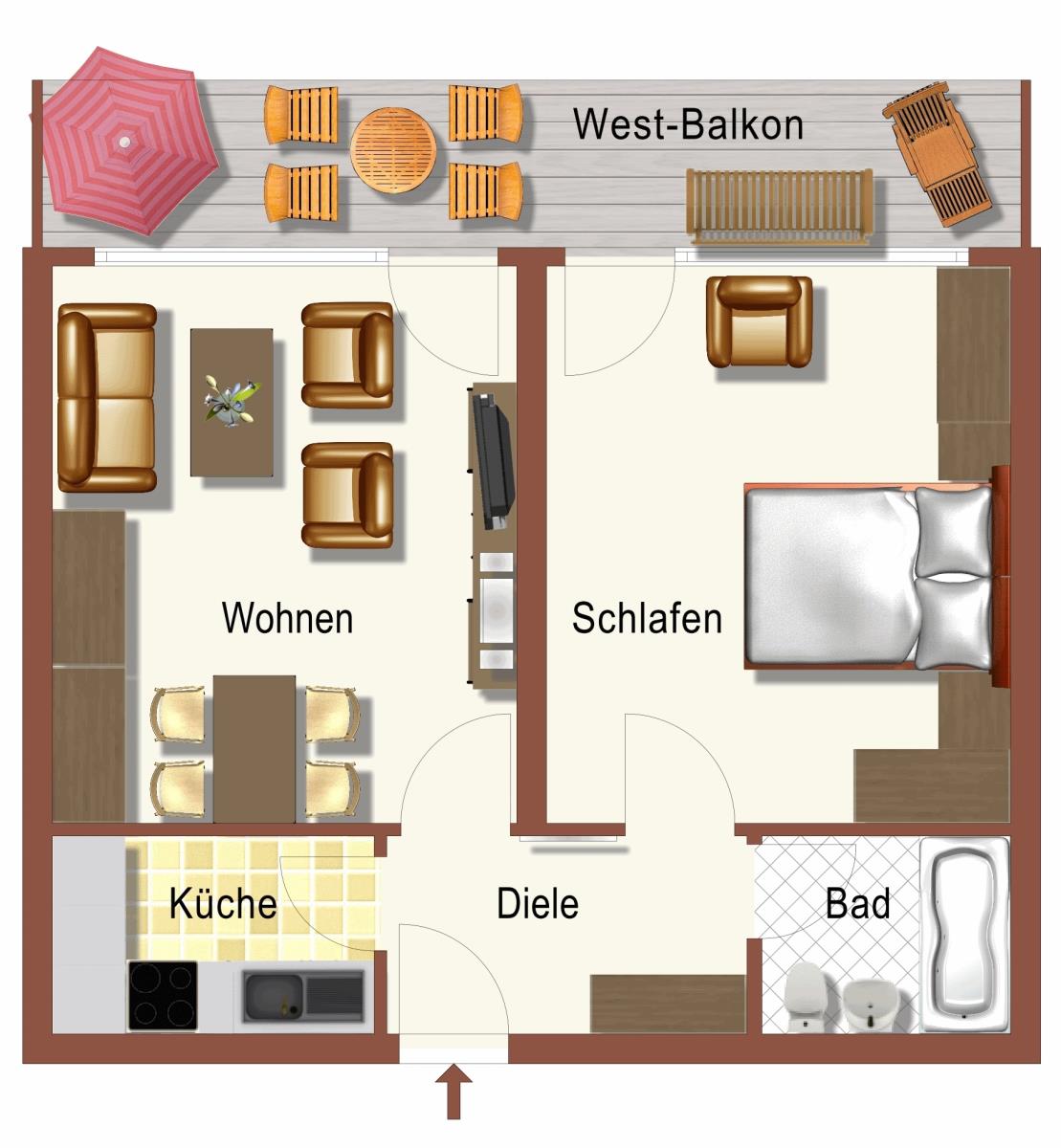 Die Wohnung ist komplett ausgestattet und eingerichtet für 2 Personen. Kindern sind herzlich Willkommen!